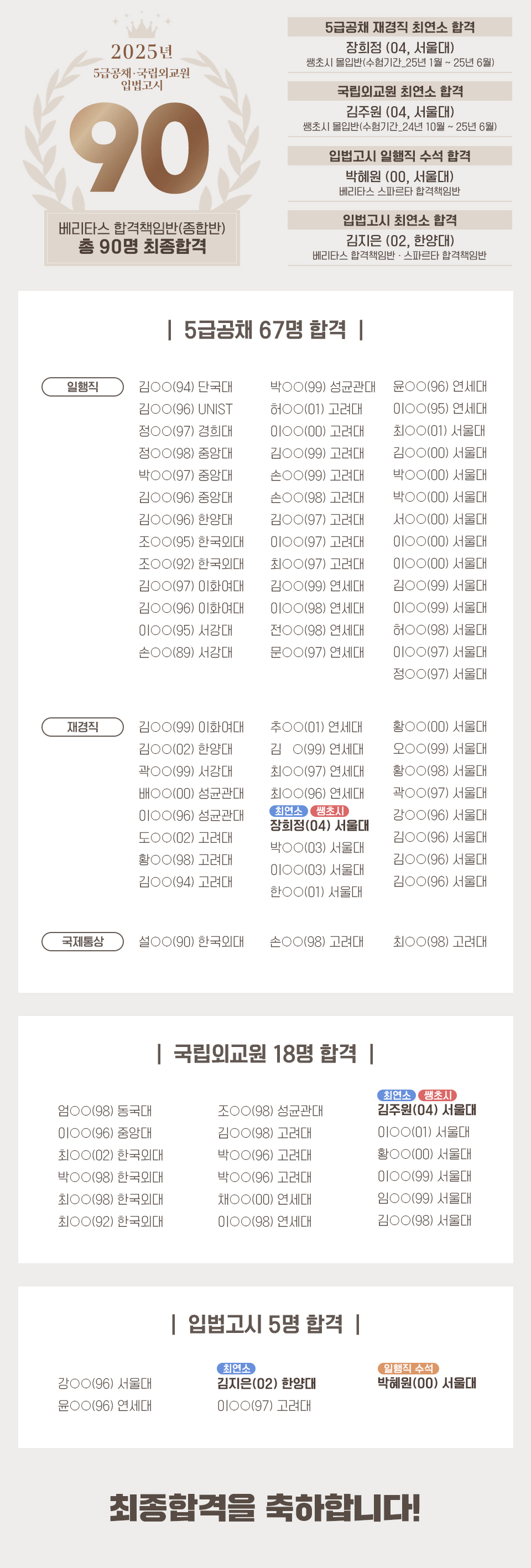 º£¸®Å¸½º ÇÕ°ÝÃ¥ÀÓ¹Ý, 2025³â 5±Þ°øÃ¤, ±¹¸³¿Ü±³¿ø, ÀÔ¹ý°í½Ã 90¸í ÃÖÁ¾ ÇÕ°Ý!